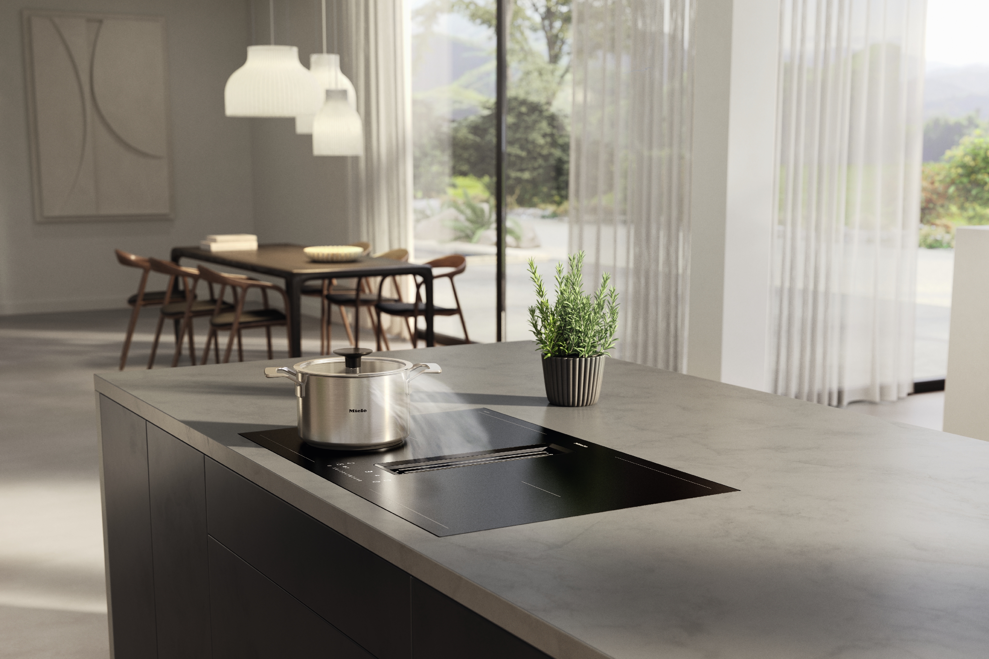 Miele Kochfelder mit integriertem Dunstabzug beseitigen effektiv Gerüche und Fett und ergänzen durch ihr elegantes Premium-Design jede Küche. Der Dunstabzug arbeitet sehr effizient und sehr leise - so können Sie sich auf das Wesentliche konzentrieren.